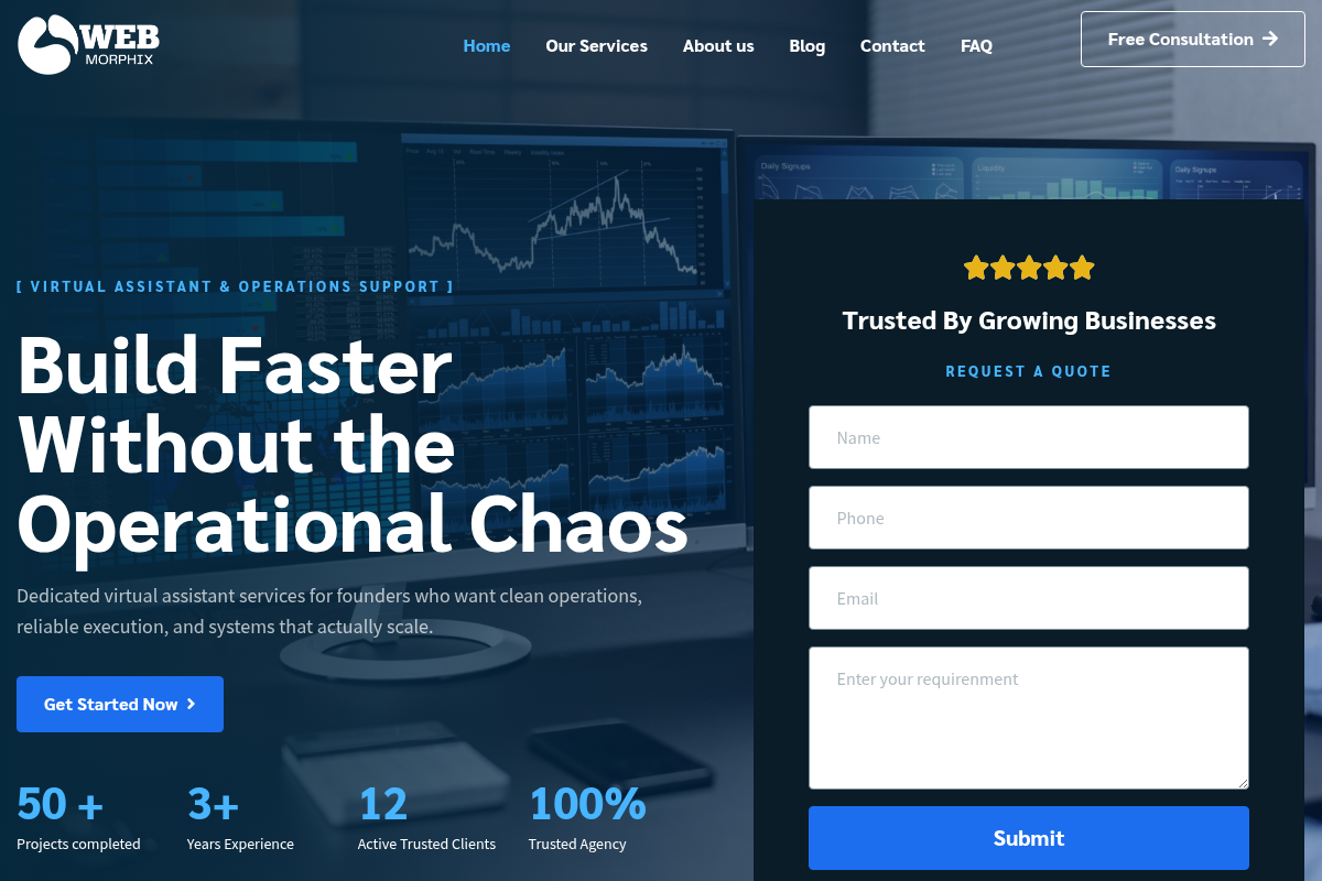 If your business relies heavily on WordPress or GoHighLevel, Web Morphix is the logical choice. They function as a hybrid between a specialized virtual assistant agency and an automation house. They focus on clearing operational chaos by handling CRM cleanup and lead research with high accuracy. This is a systems-driven approach for founders who need human oversight on their automated tasks.