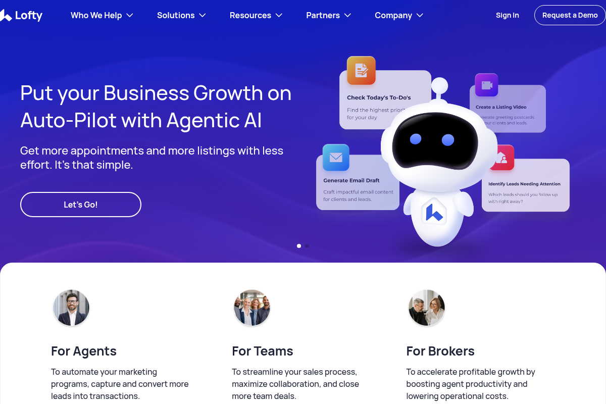 Lofty has positioned itself as an industry-leading agentic AI operating system specifically built for real estate brokerages and teams. Unlike basic automation tools, Lofty AOS autonomously plans and executes entire workflows, from lead engagement and property recommendations to social media strategy and transaction management. By acting as a force multiplier, it reduces the administrative burden on agents and ensures consistent follow-ups. It is designed to integrate seamlessly into existing brokerage operations to maximize productivity and growth.