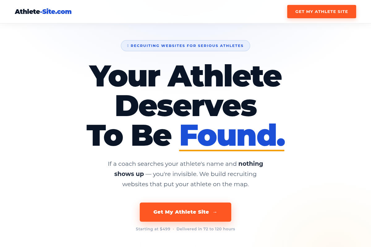Athlete-Site.com specializes in creating high-impact, custom recruiting websites designed to make student-athletes instantly discoverable. They focus on SEO-friendly architecture, ensuring your name appears when coaches perform targeted searches. With a promise of delivery in just 3-5 days, they provide a fast-track solution for those in the middle of active recruiting cycles. Their packages offer a professional, dedicated URL that you control, rather than relying on third-party platform algorithms. It is a streamlined, effective service for athletes who need to stand out immediately.