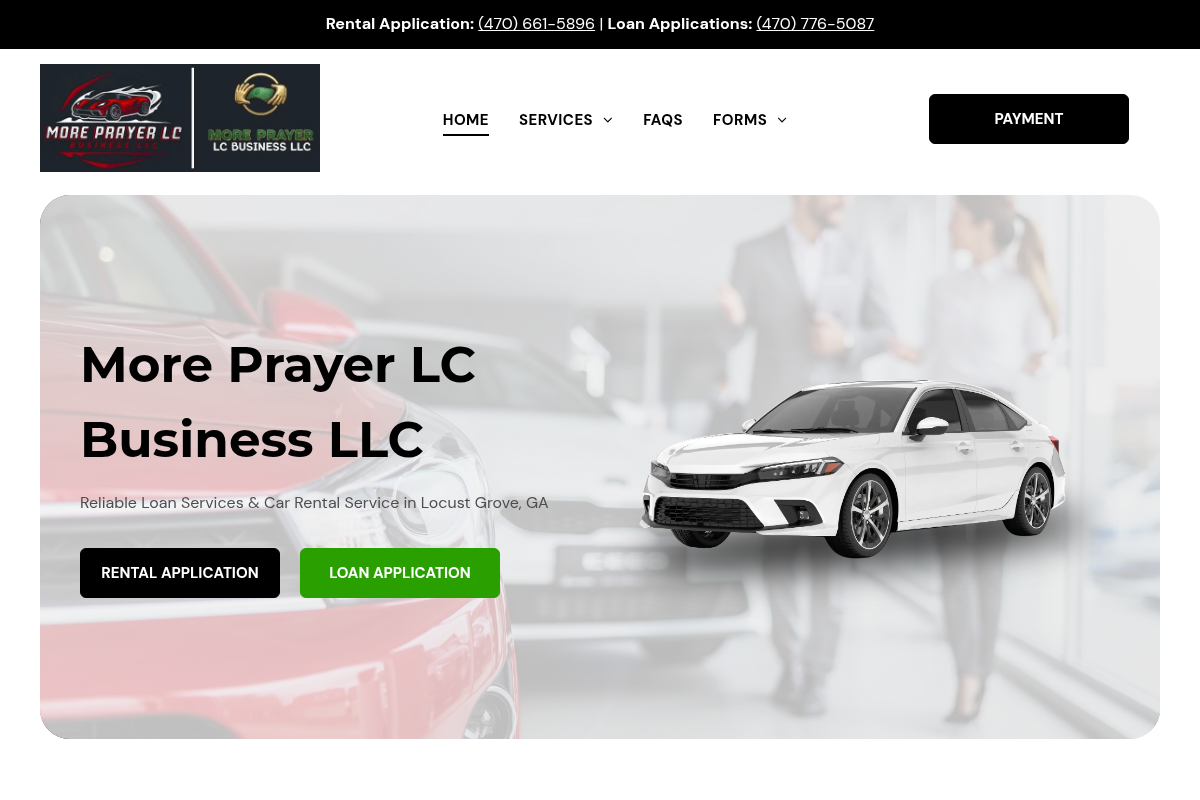 More Prayer LC Business LLC offers a unique hybrid service model that combines business lending with practical car rental solutions right in Locust Grove. They understand that entrepreneurs often need both the money to grow and the reliable transportation to reach their clients. Their focus is on high accessibility, ensuring that equipment financing isn't locked behind unreachable barriers for local startups. By providing both capital and logistics, they act as a one-stop shop for travelers and emerging business owners alike. It is a genuine local operation that prioritizes community support over corporate red tape.