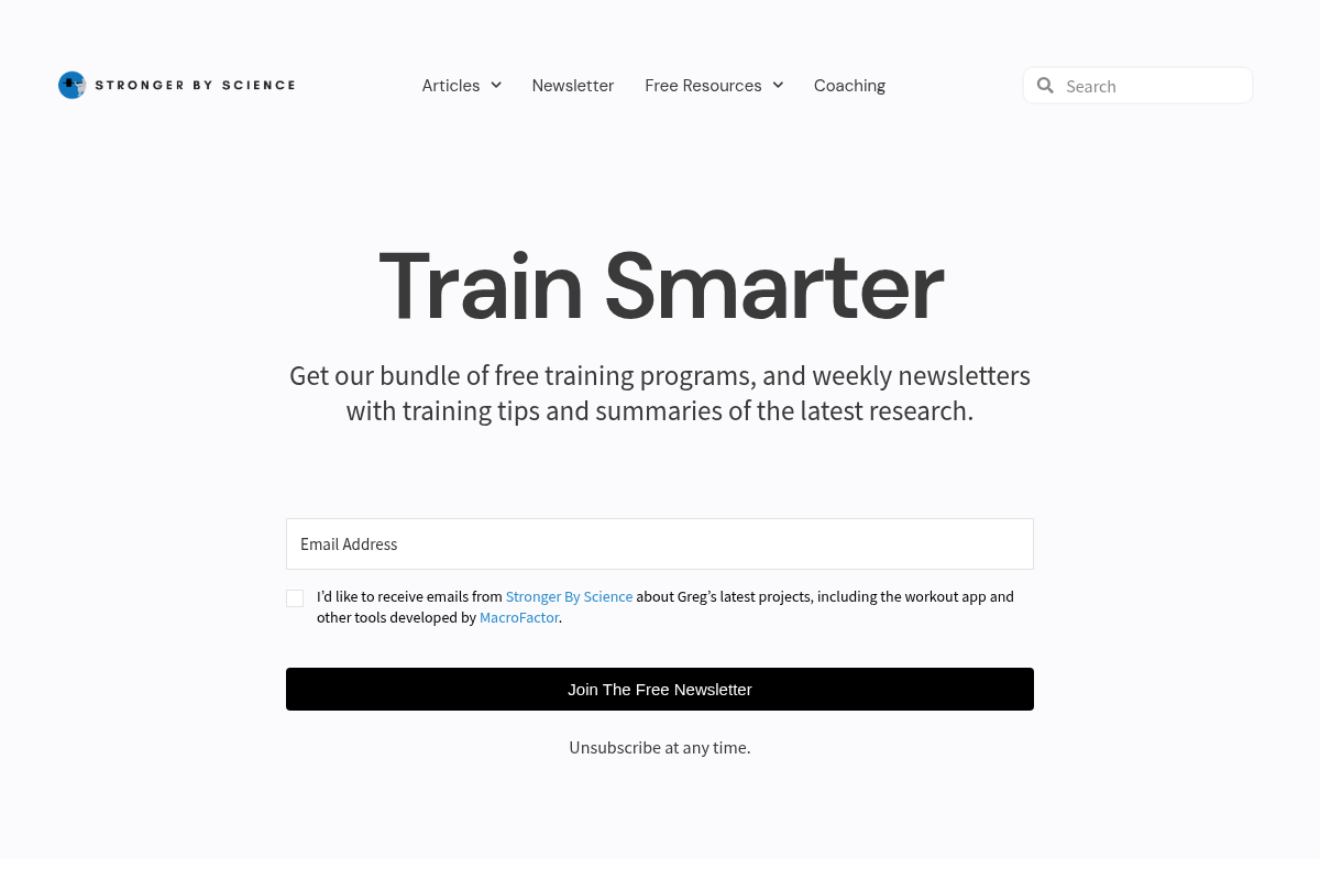 A screenshot of the Stronger By Science website.