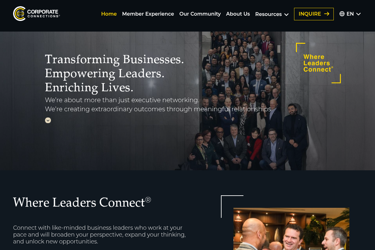 CorporateConnections focuses on transforming businesses by fostering deep, meaningful relationships rather than just transactional interactions. They operate through a chapter-based model that allows you to build a tight local network while still maintaining access to a global platform. The organization emphasizes 'Curated Experiences' that go beyond standard boardrooms to spark creative breakthroughs. Their membership is highly selective, ensuring you are surrounded by leaders who operate at your same high level of intensity. By focusing on strategic alliances, members enter new markets and scale faster than they could alone.