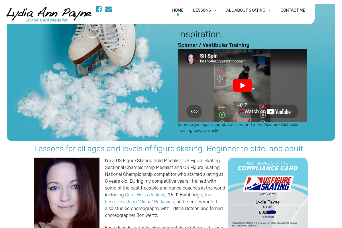 Lydia Ann Payne is a US Figure Skating Gold Medalist and a former national competitor who brings a wealth of elite-level experience to the Harbor City ice community. She offers a comprehensive approach to training, covering everything from basic skills and stroking to advanced ice dance and freestyle techniques. Beyond standard instruction, she provides specialized spinner training to help skaters develop rotational awareness and core stability. Her coaching philosophy is rooted in decades of training with world-renowned instructors, ensuring students receive high-caliber, technical guidance. She is an excellent choice for skaters who want a coach with a deep, personal passion for the sport's traditions and rigorous competitive standards.
