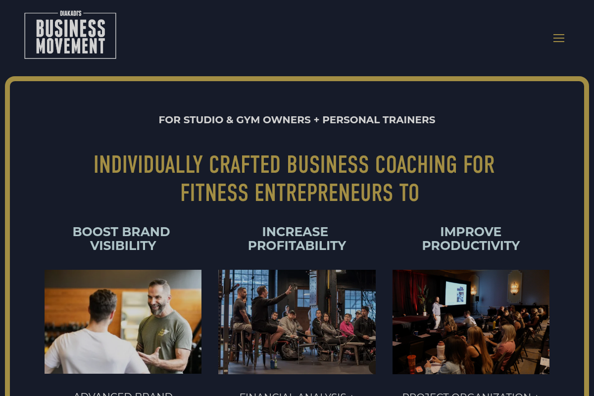 Founded by industry veteran Billy Polson, The Business Movement is a premier coaching organization that focuses on individualized performance coaching for fitness entrepreneurs. It is built upon the success of DIAKADI, a highly awarded training facility, offering deep insights into building private practices and physical fitness facilities. The program is renowned for its highly personalized approach, helping trainers gain the confidence to scale their businesses and increase revenue through actionable, gritty problem-solving.
