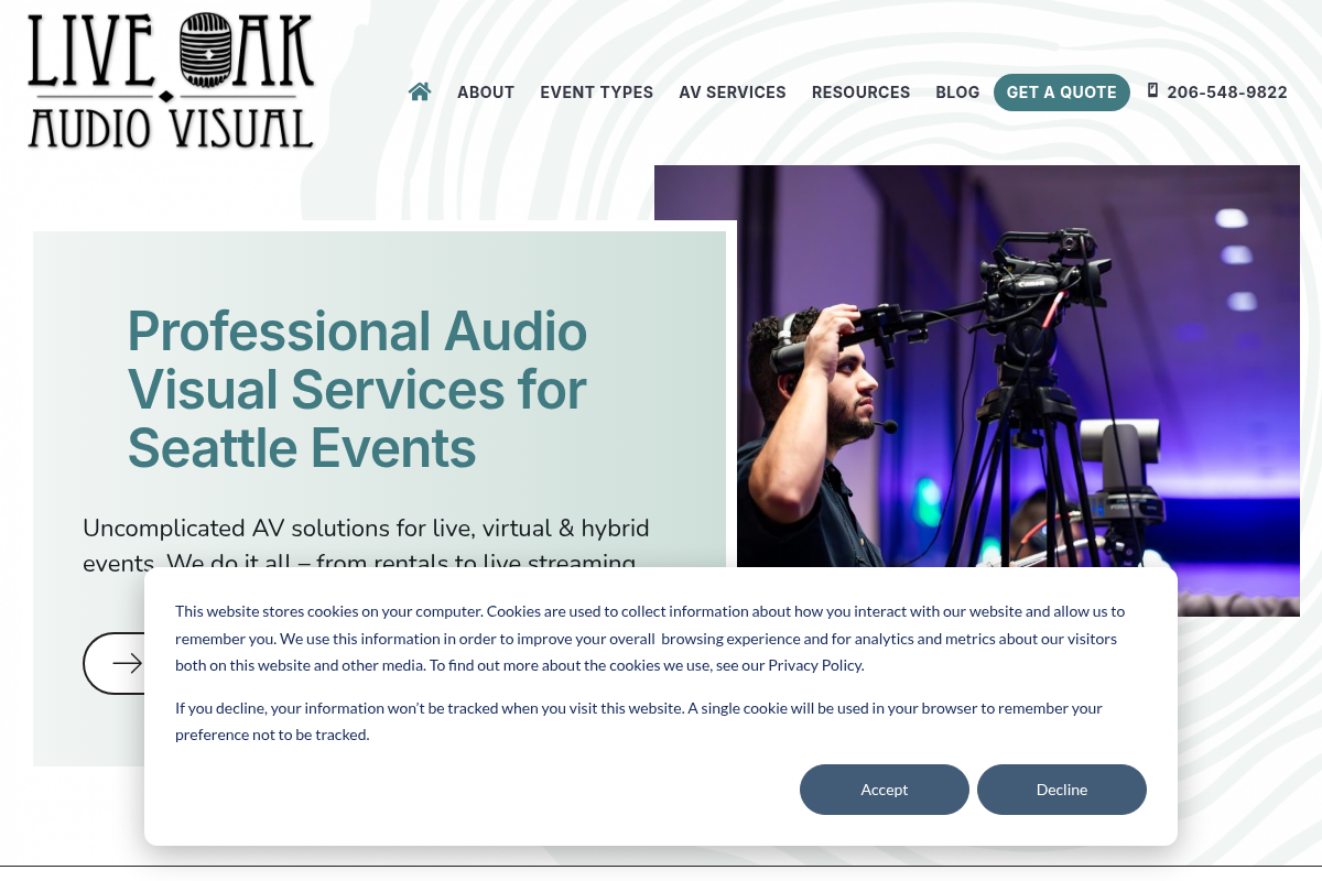 If you are running a fundraiser or a high-stakes meeting in Seattle, Live Oak is the partner that eliminates technical jargon. They focus heavily on 'uncomplicated' solutions, which is a massive relief for non-technical event planners. Their expertise extends into hybrid events and webcasting, ensuring your remote audience feels included. They are trusted by major brands like Marriott because they prioritize the planning process as much as the show itself.