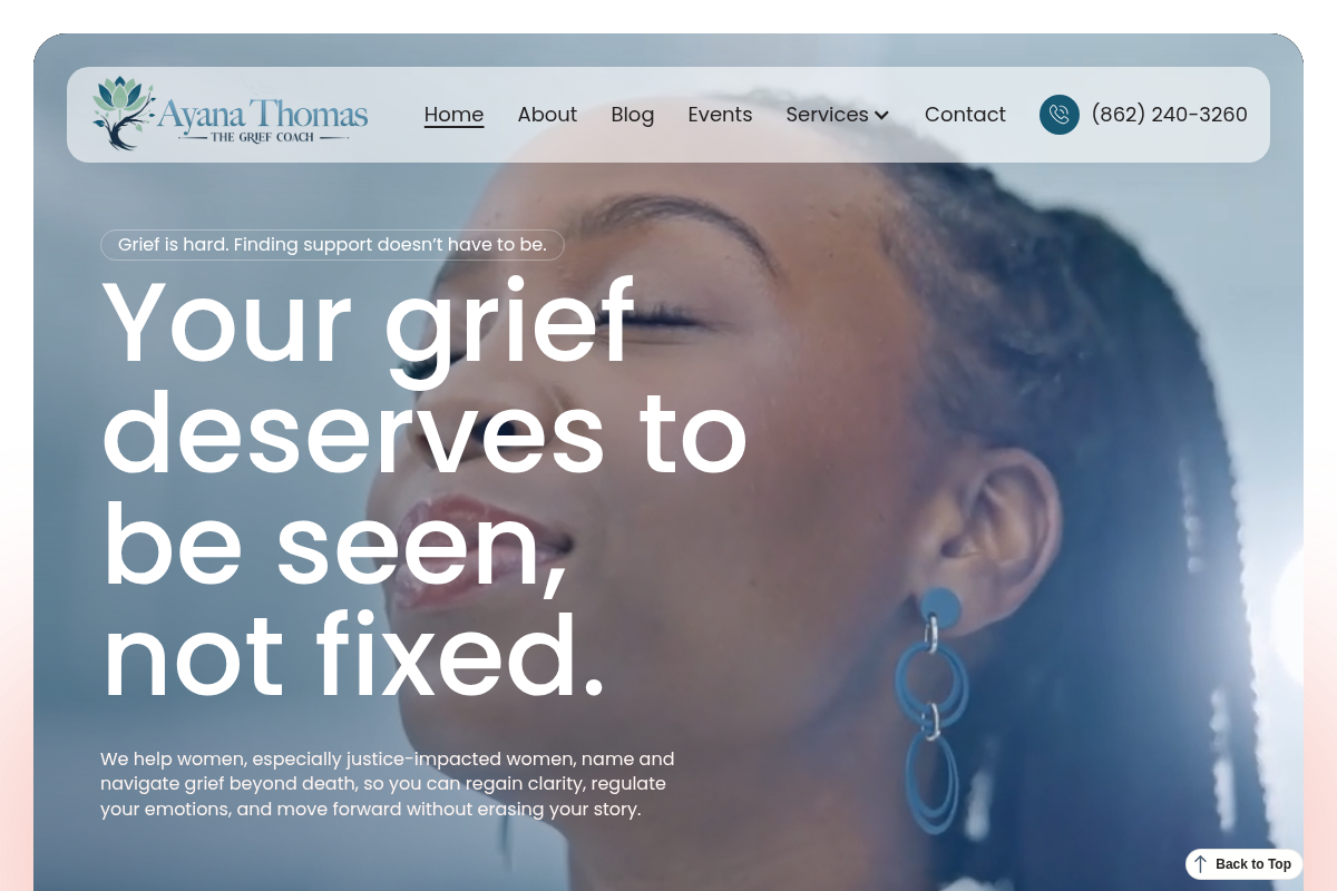 Ayana Thomas provides trauma-informed grief support specifically designed for women, with a focus on those navigating loss beyond death. Her practice centers on losses related to incarceration, identity shifts, trauma, and life disruption, ensuring that clients feel seen and respected. Ayana uses her own 'Grief Method' to help clients name their grief, regulate their nervous systems, and move forward with dignity. Her approach is grounded in social justice and accountability, making it an excellent choice for individuals who have felt overlooked by traditional systems. She offers both individual and group support sessions virtually.
