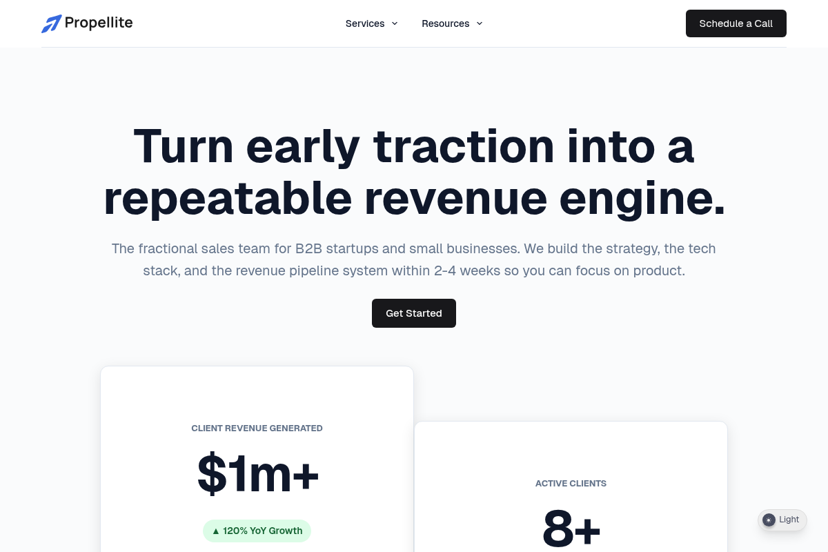 Propellite is a high-performance fractional sales team that promises to build your revenue engine in under four weeks. They utilize a modern stack including Clay and N8N to ensure 'atomic-level' customization in every touchpoint. Propellite showcases a 15% reply rate by moving away from 'spray and pray' tactics toward trigger-based triggers and pain-based segmentation. They solve the manual SDR research bottleneck by engineering radical specificity into scale.