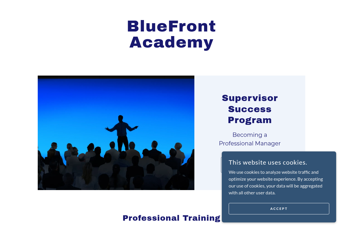 Blue Front Academy offers a structured, 12-month 'Supervisor Success Program' that takes a long-term approach to professional management. The program combines classroom lessons with ongoing peer groups and direct coaching from the instructor to ensure concepts move from theory to practice. It is designed for businesses that want a comprehensive, service-oriented training experience that lasts beyond a single seminar. Their model provides the accountability often missing in shorter, one-off training courses.