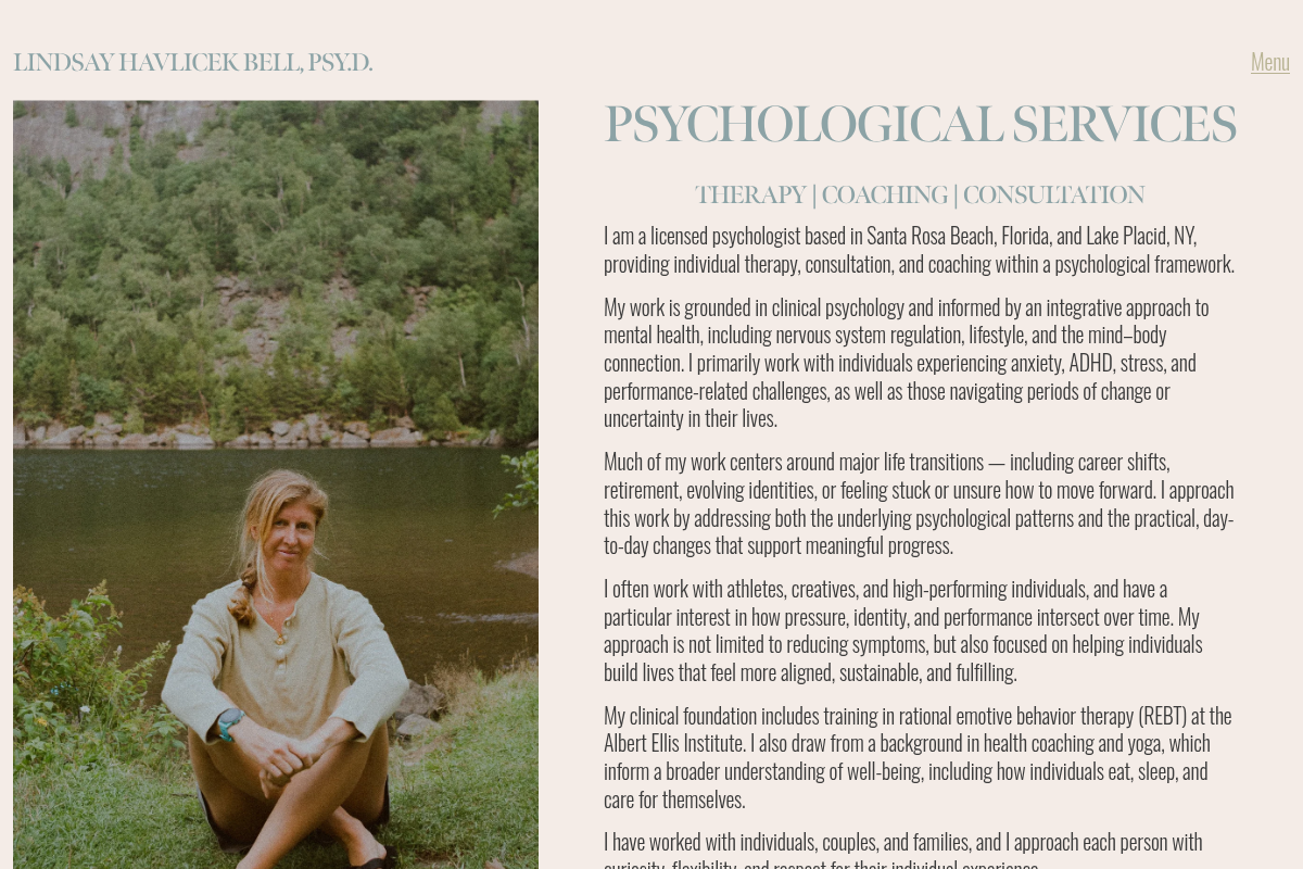 Dr. Lindsay Havlicek Bell offers a deeply intentional approach to therapy and mentorship that is specifically designed for high-performers, creatives, and athletes. Her practice is grounded in clinical psychology but integrates lifestyle and nervous system regulation to help you move beyond symptom reduction. She works with clients in Florida and New York to untangle patterns of over-efforting and build more sustainable lives. By creating a relationship-based container, she helps you clarify what is actually true beneath the noise of your professional demands. Her work is not about optimizing for an external ideal, but about fostering genuine alignment and long-term fulfillment.