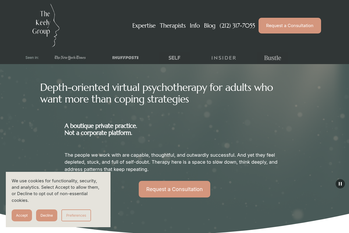 The Keely Group excels at providing psychotherapy specifically tailored to the unique psychological demands of artists, entertainers, and public-facing creatives. They understand that for many of their clients, creative work is not just a job but an extension of the self, which can lead to complex issues regarding identity and visibility. Their approach goes beyond simple tactics, focusing instead on the relational patterns and fears that often cause creative blocks or burnout. By helping you build a steadier internal base, they allow you to engage with your work without turning your creative process into a performance. This practice is highly attuned to the whiplash between intensity and emptiness that many in creative fields experience.