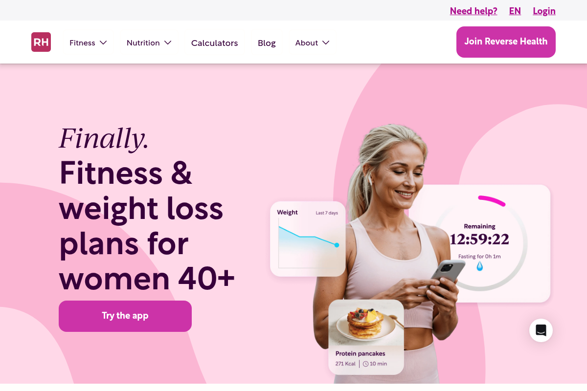 Reverse Health is a tech-forward app-based program that brings expert-designed weight loss strategies directly to your phone. It is specifically tailored for women over 40, incorporating elements like somatic yoga, wall pilates, and fasting protocols to suit your changing body. The app focuses on building habits that stick, rather than relying on temporary fixes. By providing a combination of meal plans, movement routines, and tracking tools, it makes it easier to stay consistent daily. It is a fantastic option for the self-starter who wants professional-grade guidance in an easy-to-use digital format.