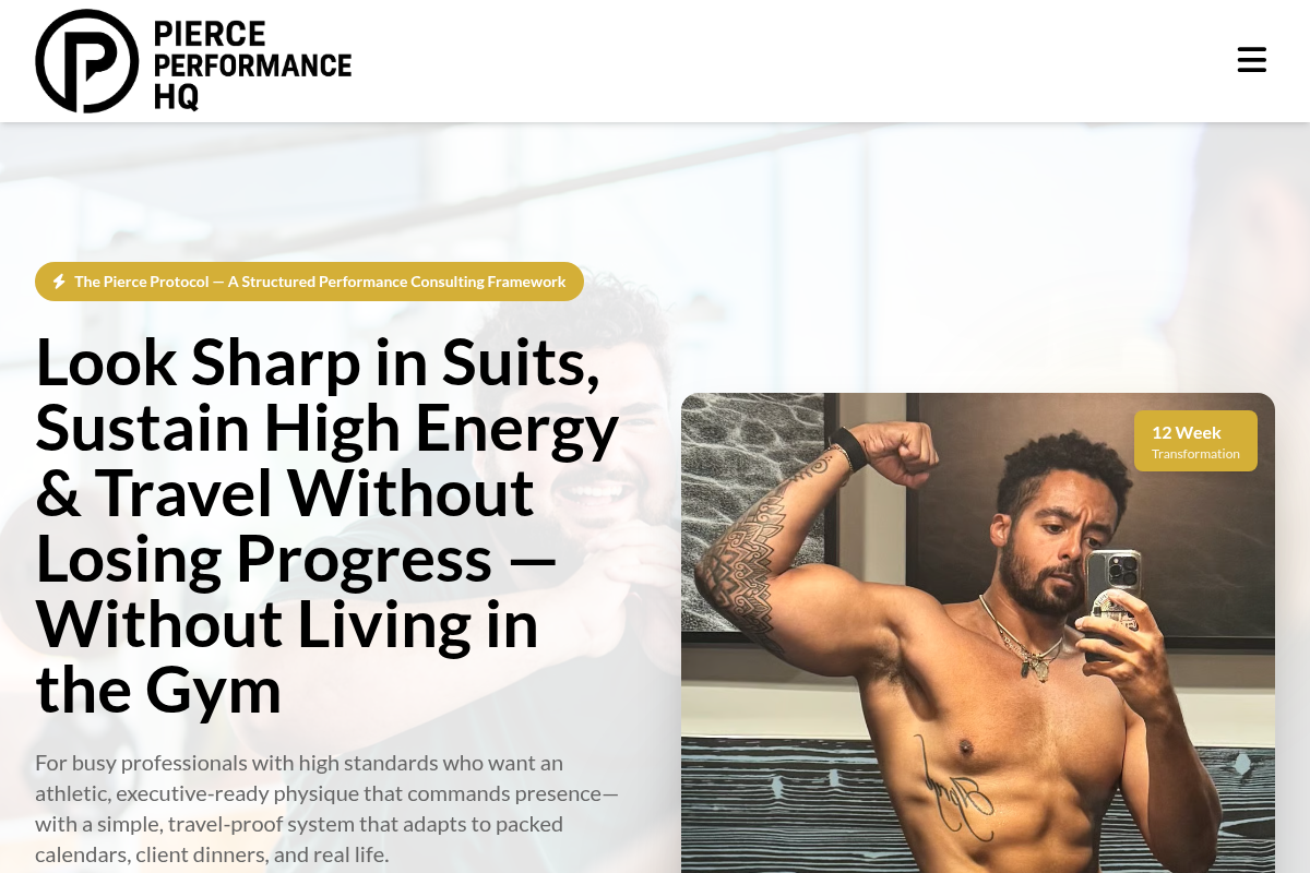 The Pierce Protocol is all about removing uncertainty for the busy professional. They manage every variable—programming, nutrition, and adjustments—so you can just execute. The Pierce Performance system is built to be travel-proof, allowing you to maintain an athletic physique even when hopping between time zones.