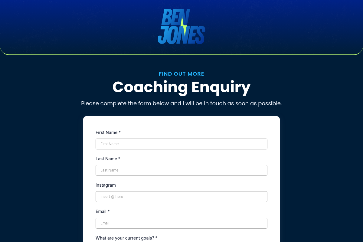 Ben Jones Training offers a streamlined, results-oriented approach to personal and online coaching. The platform is built around a high-conversion enquiry process that ensures every new client is a perfect fit for their methodology. By prioritizing a discovery call, Ben Jones fosters immediate trust and alignment, allowing for highly personalized programming. The service is widely recognized for its focus on client acquisition, providing a clear roadmap for those ready to commit to long-term health and lifestyle changes. Testimonials highlight the effectiveness of his direct, no-nonsense coaching style.