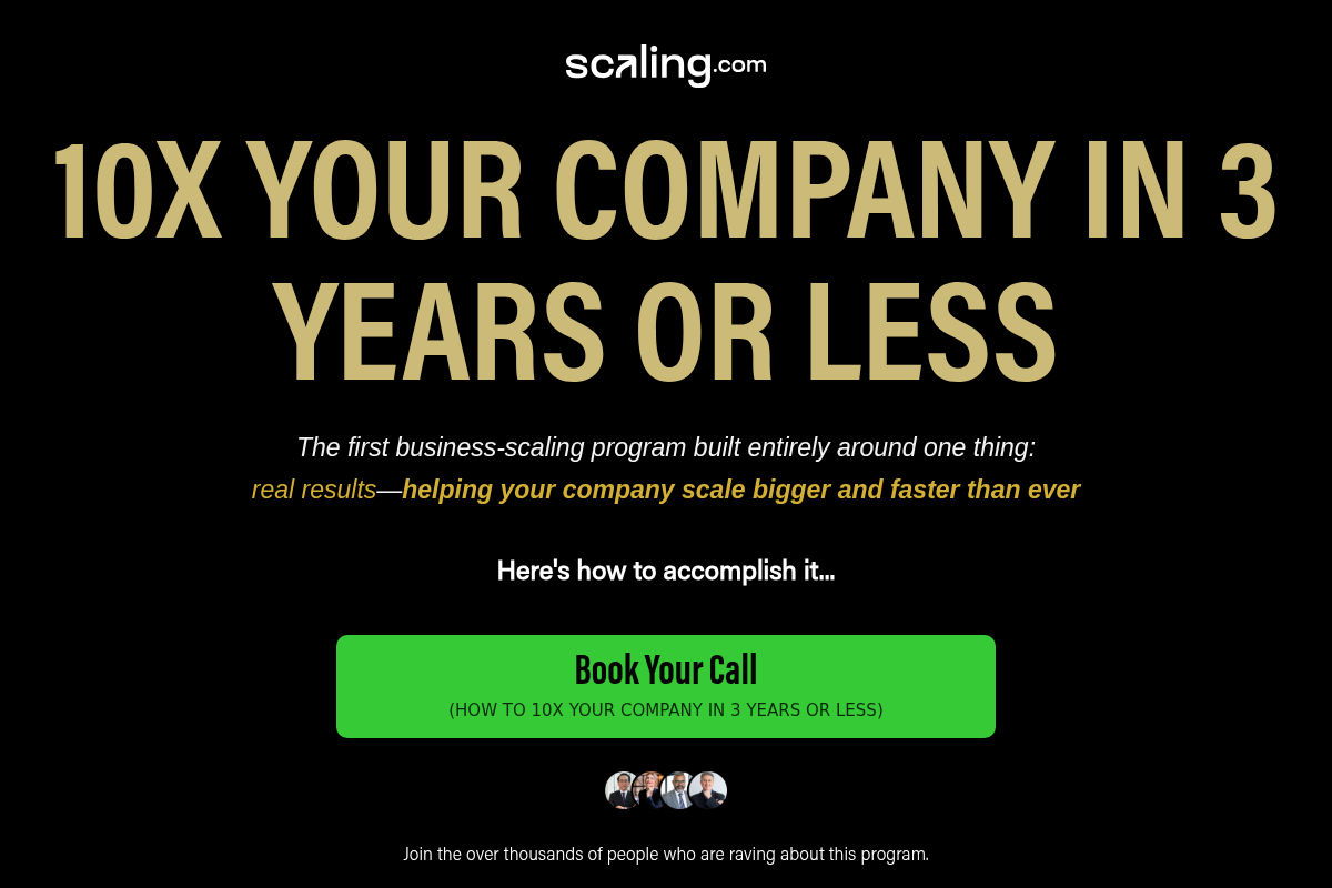| Scaling.com | Founders seeking identity-level transformation and aggressive 10X growth. | |