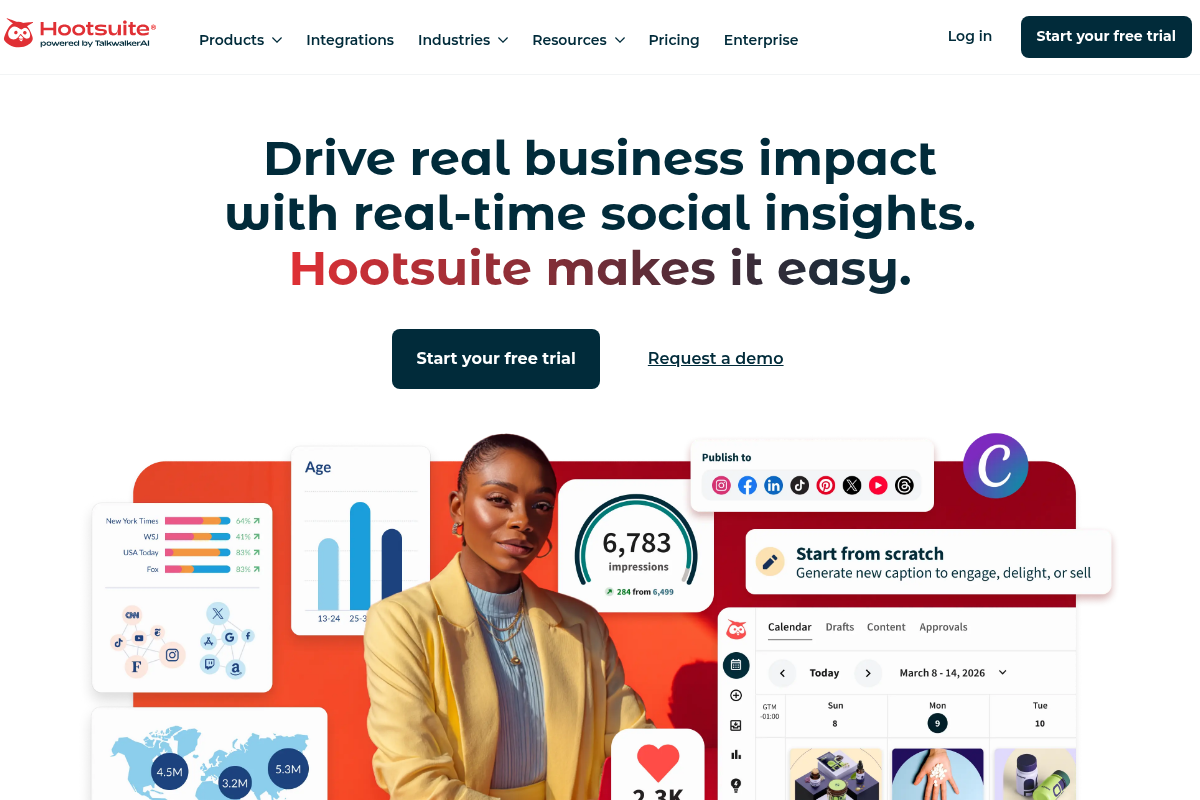 Hootsuite remains an industry leader for comprehensive social media management. It offers a robust unified inbox that consolidates comments, DMs, and mentions from multiple platforms into one dashboard. With the recent integration of Talkwalker AI, it provides sophisticated social listening and sentiment analysis. It is ideal for teams that need to handle publishing, monitoring, and analytics in a single, scalable suite.