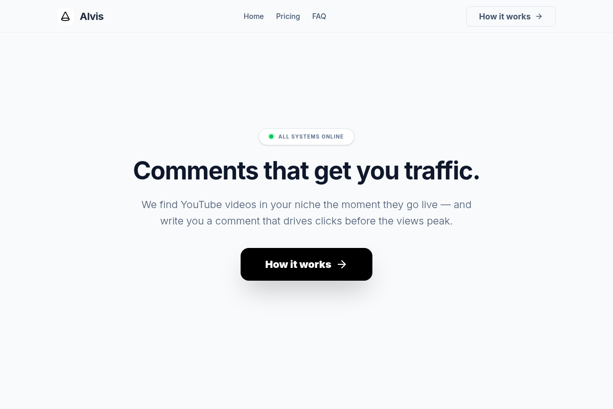 Get alvis is a specialized tool focused on catching traffic by monitoring social media and YouTube threads in real-time. It alerts you to high-impact discussions as they start trending, allowing you to be an early participant in relevant conversations. By providing strategic comment templates tailored to your brand, it helps you engage quickly and authentically before views peak. It is a streamlined, outcome-based solution for those specifically looking to drive clicks through timely interaction.