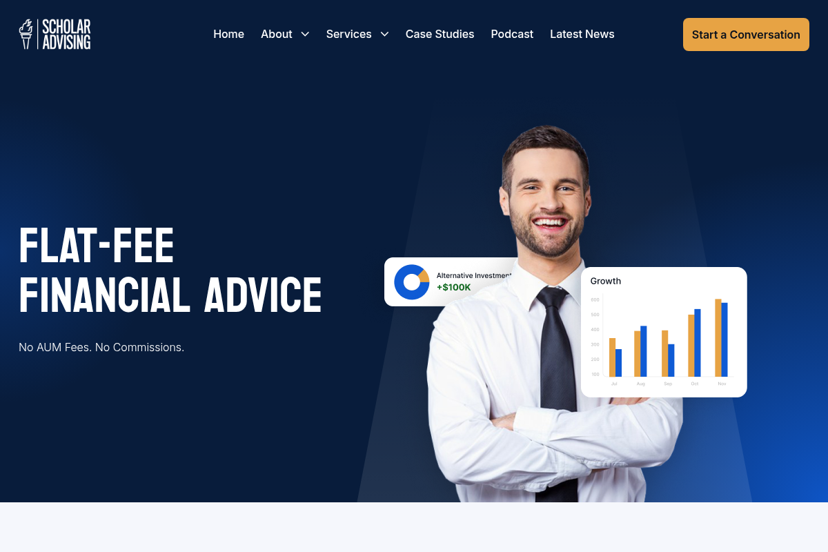 Scholar Financial Advising is an independent, fee-only firm that delivers objective guidance to physicians and high-earning professionals. Led by advisors with Ph.D. degrees in finance, they offer a highly technical approach to financial planning without charging assets-under-management (AUM) fees. Their services are designed for DIY investors who want expert strategy and oversight without handing over their entire portfolio. They are known for their team-based, fiduciary approach to complex wealth management.
