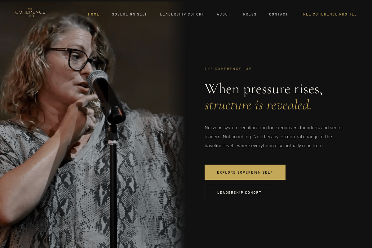 The Coherence Lab, founded by Kemina Fulwood, provides high-level nervous system recalibration specifically for executives and founders. Rather than offering traditional coaching or therapy, they focus on structural stability at the baseline level through their Sovereign Self System. This approach targets the autonomic patterns that dictate a leader's response to pressure, helping them move beyond managing symptoms to achieving a new, regulated default state. It is a precise, identity-level intervention for those who have exhausted standard developmental paths.