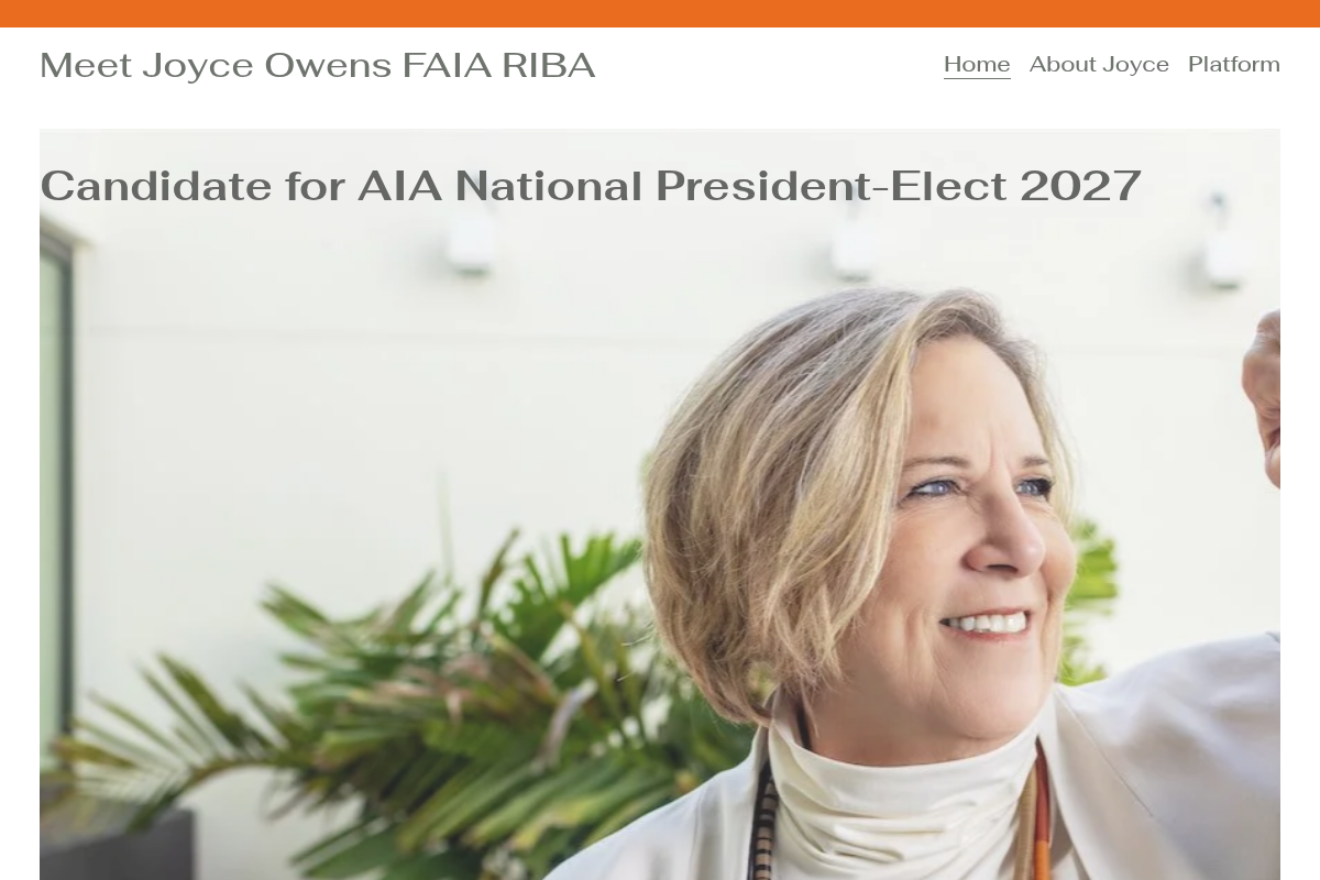 A screenshot of the Joyce Owens FAIA RIBA website.