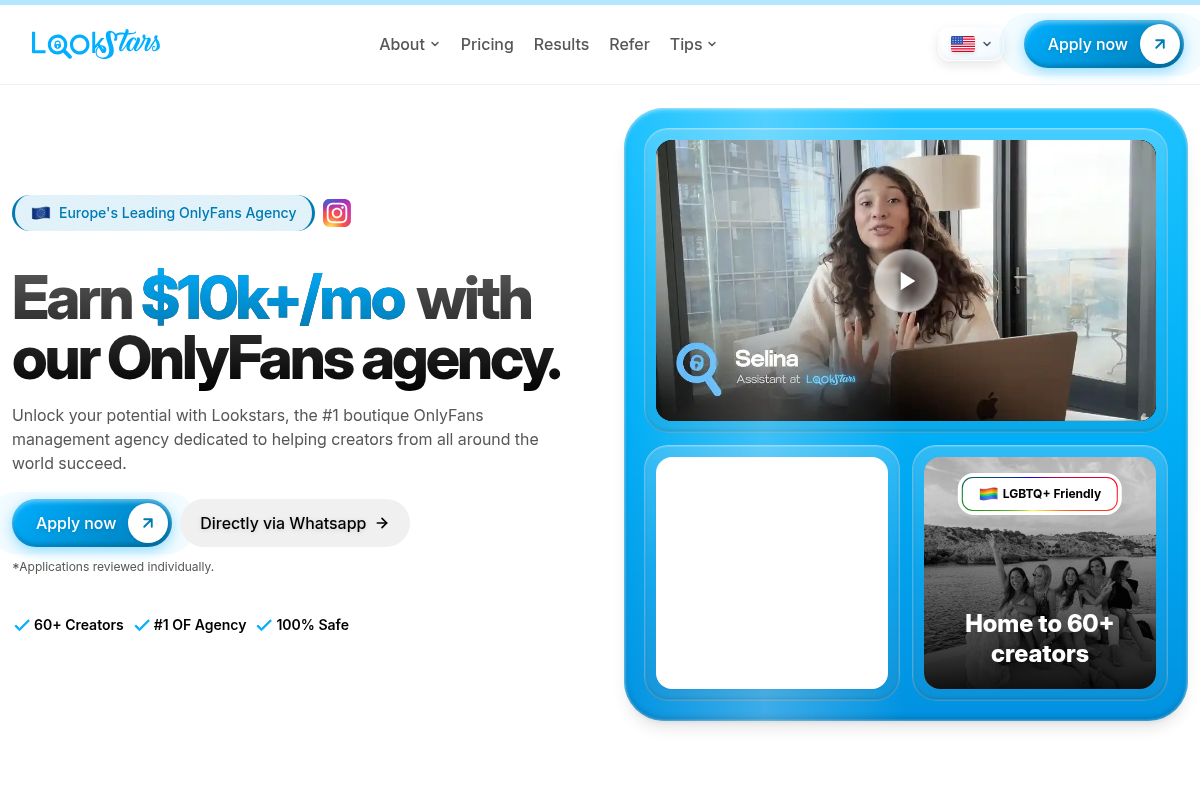 Lookstars has established itself as a premier partner for creators seeking full-service management, including 24/7 DM chatting and complex sales funnels. They focus on reducing creator overwhelm by handling everything from content calendars to platform-specific growth strategies. Their emphasis on privacy, including country blocking and robust DMCA takedown services, makes them a top choice for safety-conscious creators. They offer a highly structured operational workflow designed to scale income without requiring you to be constantly glued to your phone.