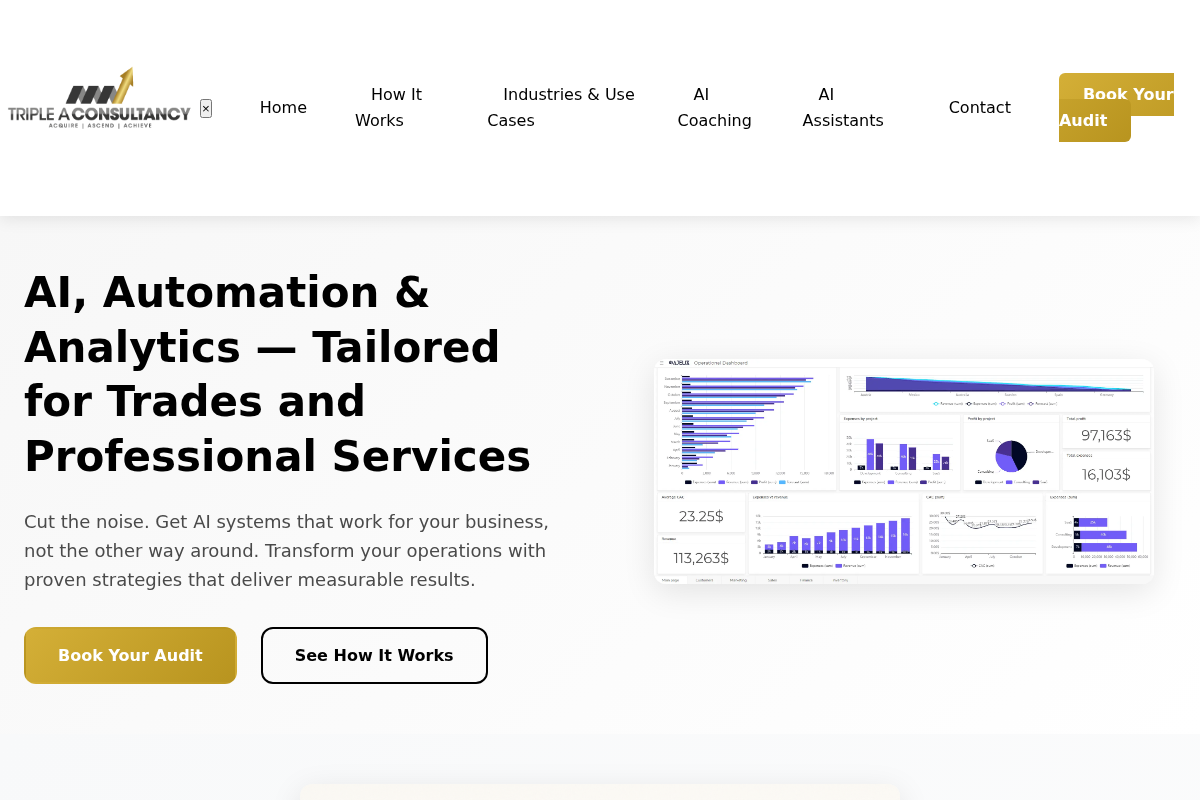 Triple A Consultancy provides a refreshing, no-fluff approach tailored specifically to UK-based trades and professional services. Craig Eldred focuses on 1:1 strategic consulting, helping business owners audit their current workflows and implement AI where it adds the most immediate ROI. Their model is perfect for those who are tired of generic webinars and need a partner to actually install AI systems for invoicing, scheduling, and lead management directly into their business.