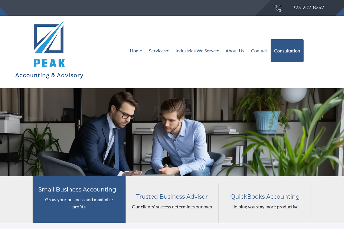 A screenshot of the Peak Accounting & Advisory website.