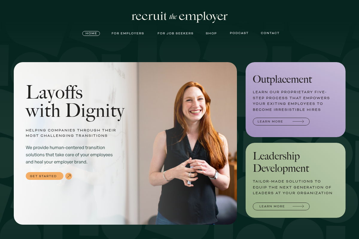 Recruit the Employer is a standout for its commitment to human-centered outplacement and leadership development. They explicitly aim to heal the employer brand by treating layoffs with dignity, rather than as a rushed transactional process. Their methodology focuses on helping individuals uncover what they want next, rather than just forcing them into the next available role. They offer tailored transition solutions that feel personal and modern, making them an excellent partner for companies that truly prioritize their people-first culture.