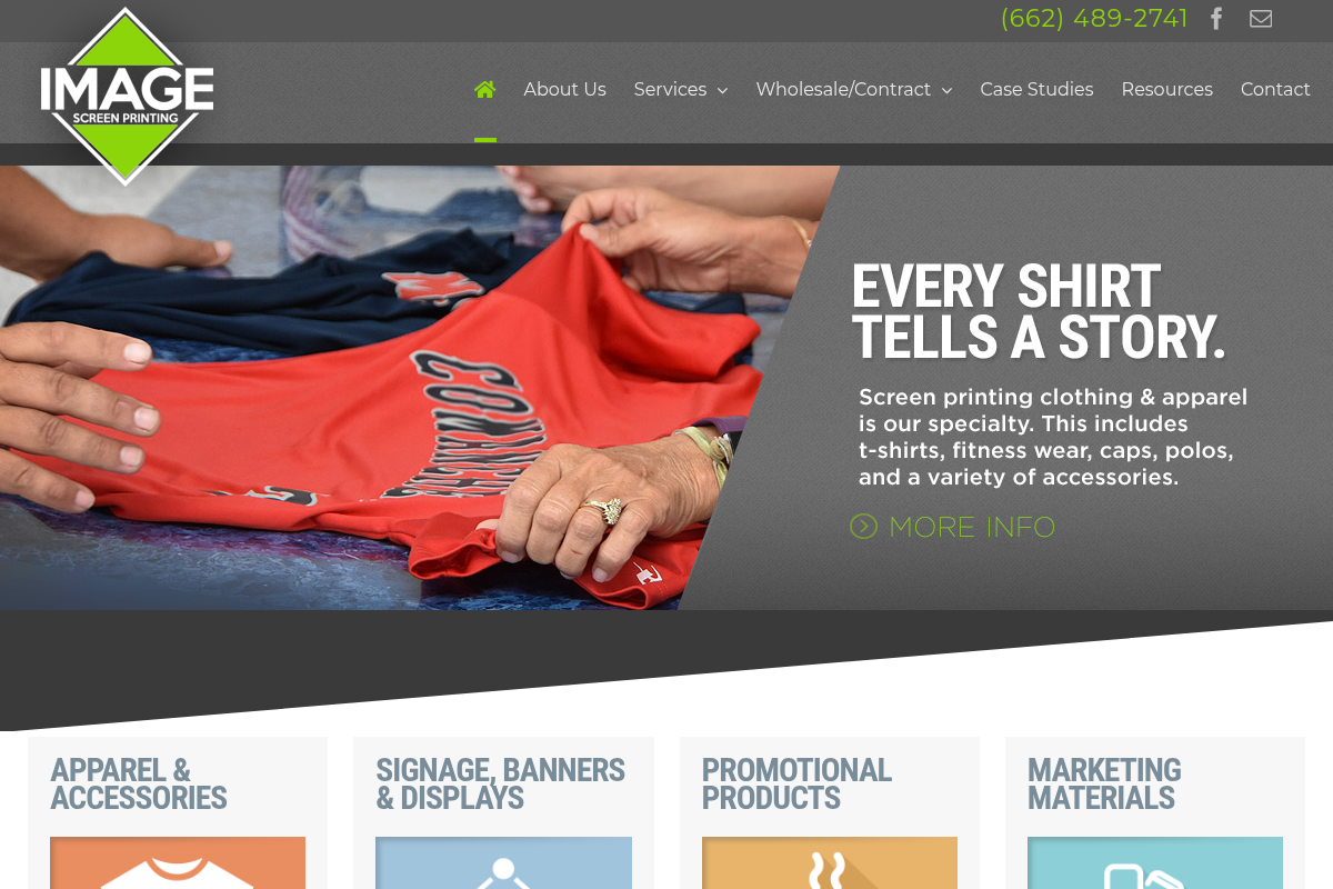 A screenshot of the IMAGE Screen Printing website.
