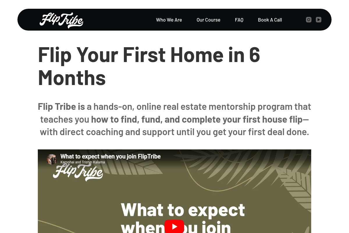Created by the hosts of HGTV’s 'Renovation Aloha,' Tristyn and Kamohai Kalama, Flip Tribe focuses on a hands-on, community-driven approach to flipping. The program provides a 12-month mentorship that connects students with a network of lenders, contractors, and fellow investors, ensuring that no one has to work in isolation. The curriculum is built on the founders' experience completing over 100 flips in highly competitive markets. It is an excellent choice for those who thrive in collaborative environments and want to learn from active, successful practitioners.