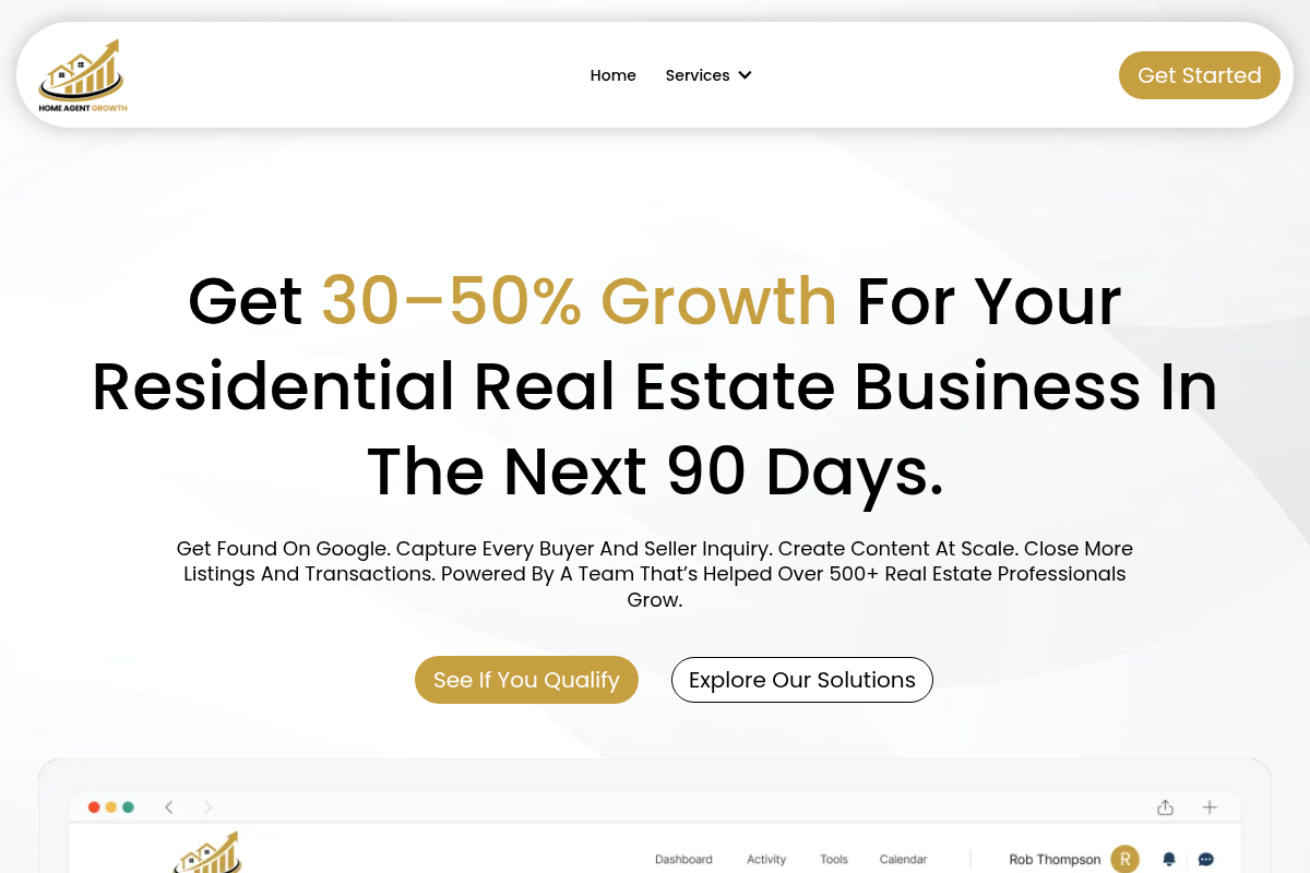 Home Agent Growth offers a unique, high-touch approach for agents seeking rapid 30-50% growth within a 90-day window. Their AI-powered system integrates local SEO, 24/7 AI reception, and automated content creation to dominate local markets. By maintaining strict exclusivity—serving only one business per location—they ensure that your marketing efforts are never cannibalized by competitors. It is a highly tailored solution for local real estate professionals who value partnership and measurable performance.