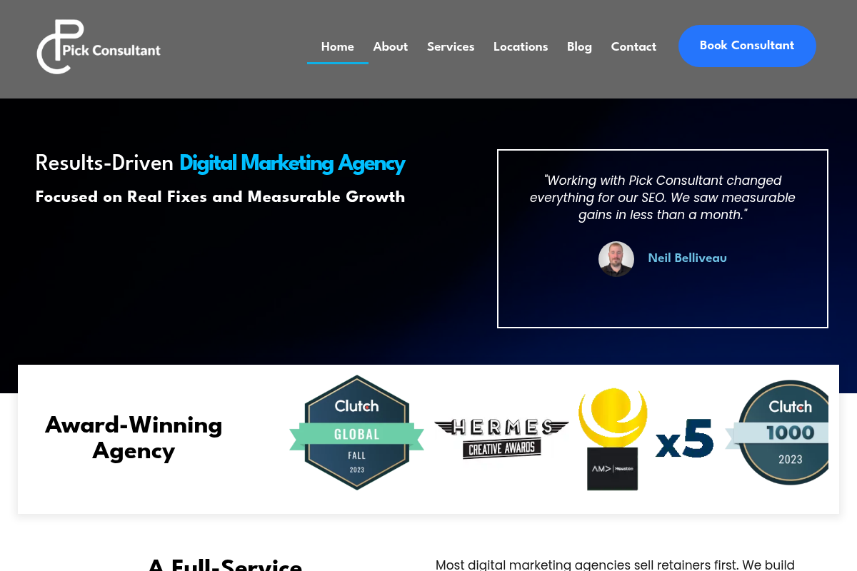 Pick Consultant functions as a data-driven growth agency that applies structured systems to real estate marketing. They specialize in reducing wasted ad spend while simultaneously increasing search visibility through a blend of technical SEO and AI-enhanced strategy. Their approach is highly analytical, providing agents with a clear roadmap to optimize their marketing budget annually. This is a solid choice for agents who want a hands-off, strategy-first partner to handle their digital presence.