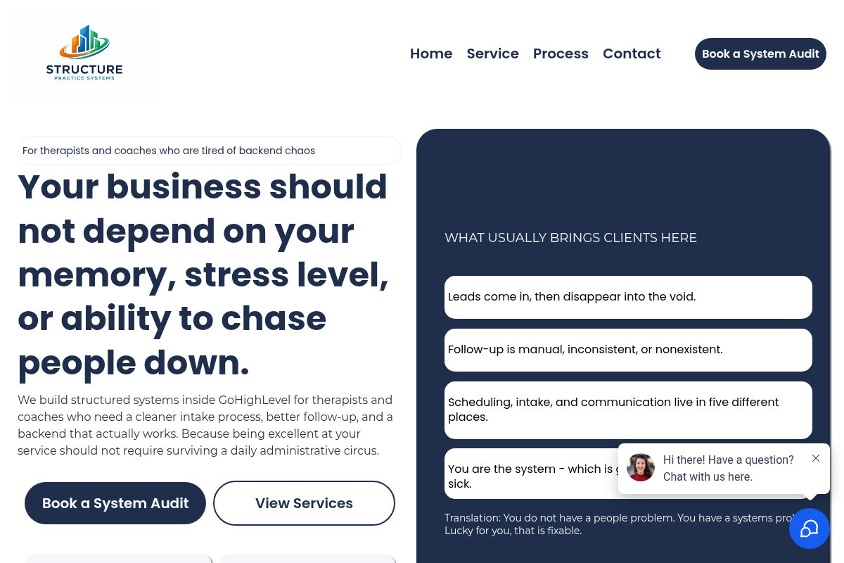 Structured Practice Systems is the gold standard for therapists and coaches looking to eliminate backend chaos. They specialize in building custom, structured workflows directly inside GoHighLevel, ensuring your intake, scheduling, and follow-up processes are fully automated. Unlike generic consulting, they provide a hands-on approach to building the operational scaffolding your business needs to scale. Their services range from foundational builds to ongoing growth partnerships, all designed to make your practice run seamlessly without constant manual intervention. By transforming your backend into a repeatable system, they allow you to focus entirely on your clients.